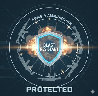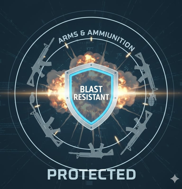 The Blast-Resistant Arms & Ammunition Storage System by Paritra Solutions is a high-security, reinforced modular unit engineered to ensure safe, controlled, and compliant storage of weapons and ammunition. Designed for defense, police, and security forces, it offers maximum protection against accidental ignition, internal explosion, theft, and environmental risks.